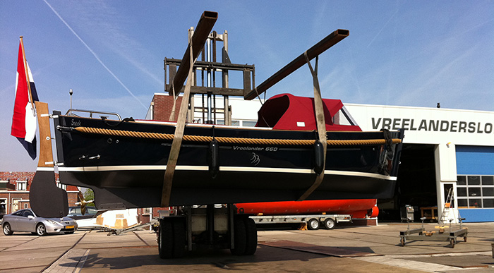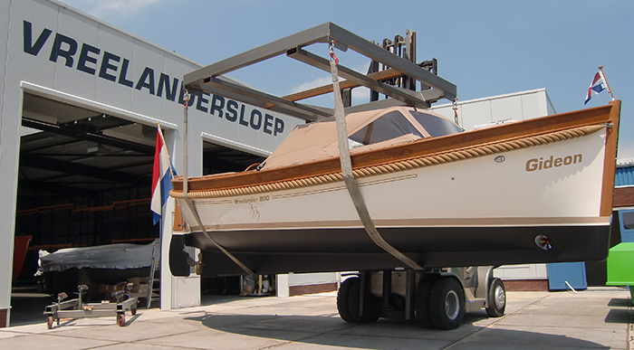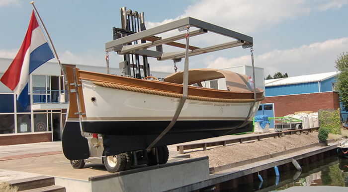 Bij de boot stalling zit het takelen, afspuiten en het opbokken inbegrepen.